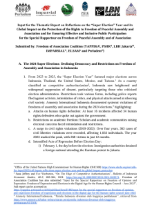 Input for the Thematic Report on Reflections on the “Super Election” Year and its Global Impact on the Protection of the Rights to Freedom of Peaceful Assembly and Association and for Ensuring Effective and Inclusive Public Participation for the Specia