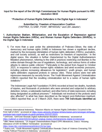 Protection of Human Rights Defenders in the Digital Age in Indonesia - Freedom of Association Coalition
